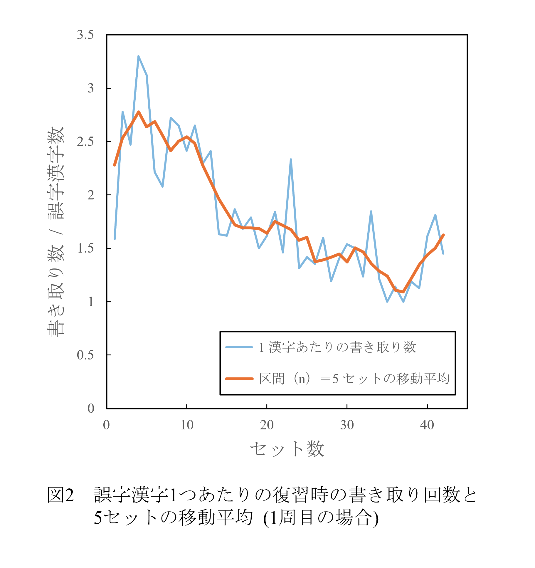 実際、誤答から再正答までの復習時の書き取り回数が減少しています。(図2)